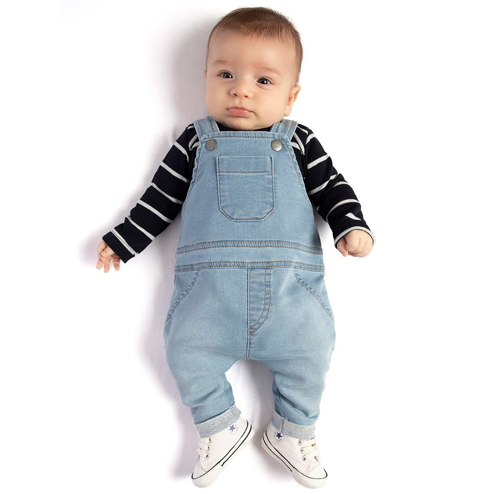Jardineira C Body Longo Para Bebe Em Jeans Confort Denim Stripes Tmx No Bebefacil Loja De Roupas Para Bebes Bebefacilmobile
